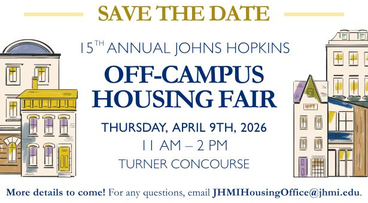 Housing FairSave the date for the Off-Campus Housing Fair on Thursday, April 9, 2026 from 11AM–2PM in the Turner Concourse (East Baltimore Campus).